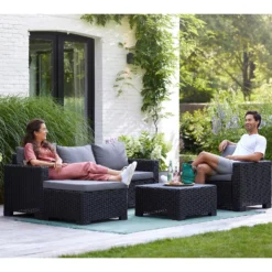 Keter California 4 Seater Outdoor Garden Furniture Chaise Lounge Set – Graphite With Grey Cushions
