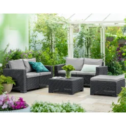 Keter California 4 Seater Outdoor Garden Furniture Lounge Set – Graphite With Grey Cushions