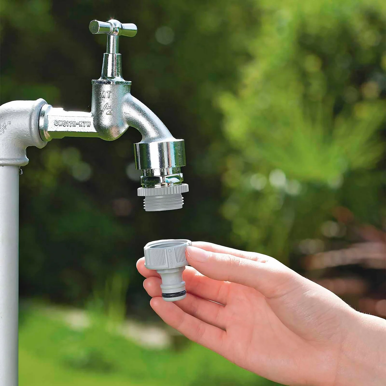 The GARDENA threaded tap connector ensures a leak free connection between the tap and your hose pipe or water distributor. Using innovative anti-splash technology the threaded tap connector allows for a focused water flow, ensuring no mess or splashing. Made in Germany, with integrated frost / UV protection and a 5 year warranty, the threaded tap connector won’t let you down. Suitable for taps with 21 mm (G 1/2″) and 26.5 mm (G 3/4″) thread.