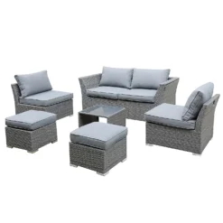 Keter California 2 Seater Outdoor Balcony Garden Furniture Set – Graphite With Grey Cushions
