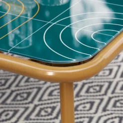 Omari Metal Garden Corner Sofa Set – Teal & Gold